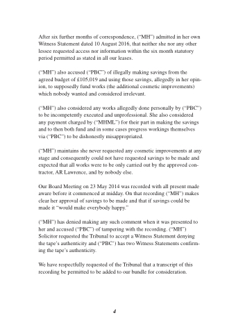 After six further months of correspondence, (“MH”) admitted in her own Witness Statement dated 10 August 2016, that neither she nor any other lessee requested access nor information within the six month statutory period permitted as stated in all our leases.