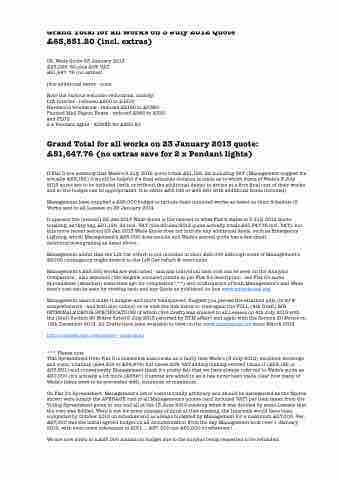 Grand Total for all works on 23 January 2013 quote: £51,647.76 (no extras save for 2 x Pendant lights)