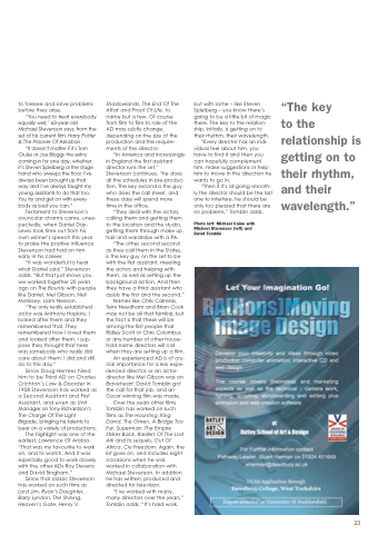 but with some – like Steven Spielberg – you know there’s going to be a little bit of magic there. The key to the relation- ship, initially, is getting on to their rhythm, their wavelength.