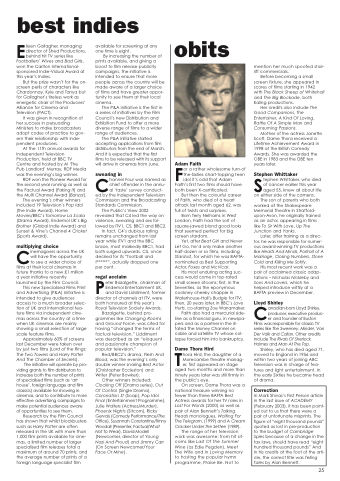 In Mark Shivas’s First Person article in the last issue of ACADEMY (February 2003), it has been point- ed out to us that there were a pair of unfortunate misprints. The figure of “eight thousand pounds” quoted as lost in pre-production to the budget of Cambridge Spies because of a change in the tax laws, should have read “eight hundred thousand pounds” And in his credits at the foot of the arti- cle, the correct title was Telling Tales by Alan Bennett.