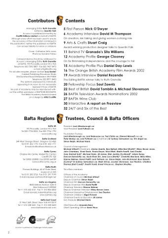 Managing Editor Ruth Grenville Edited by Quentin Falk ACADEMY is published bi-monthly by Graffiti Editions Limited on behalf of BAFTA Although every effort has been used to ensure the accuracy of the information contained in this publication, neither the publishers nor BAFTA can accept liability for errors or omissions