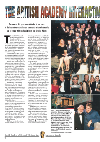 The awards this year were dedicat- ed to two stars of the interactive enter- tainment community who unfortunately are no longer with us: Roy Stringer and Douglas Adams.