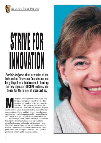 Patricia Hodgson, chief executive of the Independent Television Commission and hotly tipped as a frontrunner to head up the new regulator OFCOM, outlines her hopes for the future of broadcasting.