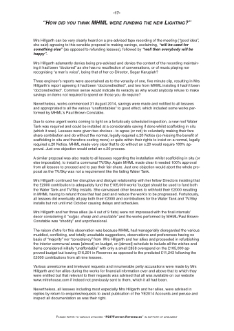 Nevertheless, all lessees including most especially Mrs Hillgarth and her allies, were advised in replies by return to enquiries/requests to await publication of the YE2014 Accounts and peruse and inspect all documentation as was their right.