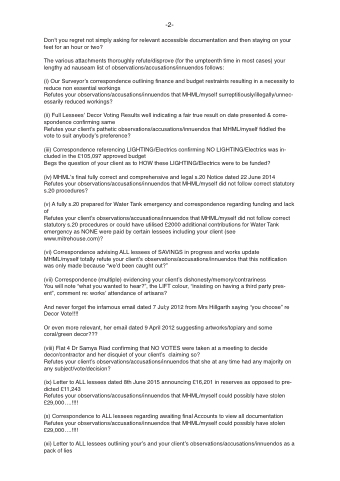 Refutes your client’s observations/accusations/innuendos that MHML/myself did not follow correct statutory s.20 procedures or could have utilised £2000 additional contributions for Water Tank emergency as NONE were paid by certain lessees including your client (see www.mitrehouse.com)?