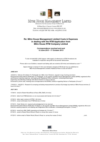 Re: Mitre House Management Limited Costs & Expenses in dealing with the RTM Application from