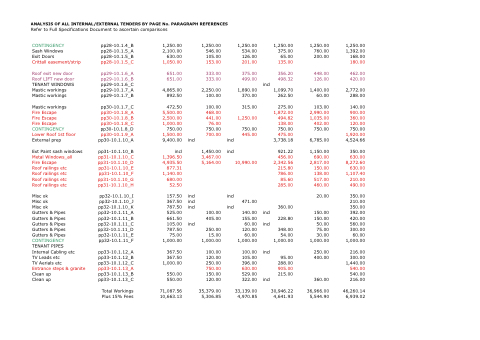 ANALYSIS OF ALL INTERNAL/EXTERNAL TENDERS BY PAGE No. PARAGRAPH REFERENCES