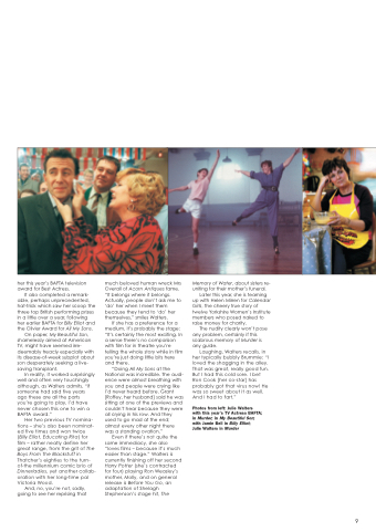 Photos from left: Julie Walters with this year’s TV Actress BAFTA; in Murder; in My Beautiful Son; with Jamie Bell in Billy Elliot;