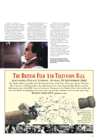 THE BRITISH FILM AND TELEVISION BALL ALEXANDRA PALACE LONDON SUNDAY 29 SEPTEMBER 2002