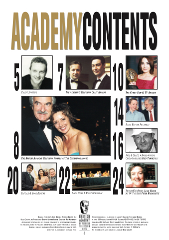 AT BAFTA 195 PICCADILLY LONDON W1V 0LN TELEPHONE 020 7734 0022 FAX 020 7734 1792 E-MAIL jmorrell@ BAFTA.ORG WEBSITE WWW.BAFTA.ORG THE OPINIONS EXPRESSED BY INDIVIDUALS IN ARTICLES IN ACADEMY DO NOT NECESSARILY REPRESENT THOSE OF BAFTA NO PART OF ACADEMY MAY BE REPRODUCED WITHOUT THE WRITTEN PERMISSION OF BAFTA COPYRIGHT © 2000 BAFTA