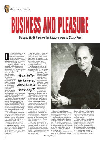 tainly staff and members, all have come to experience Angel’s self con- fessed “hands on” approach. It was therefore very much the businessman who set about dragging BAFTA – sometimes kicking and screaming - into the new Millennium.