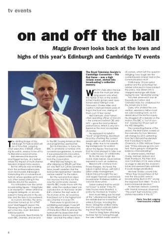 He expressed his belief in “local” programming, described his policy of letting the content people get on with that side of things, while, true to his advertis- ing background, he worried about the figures. The buzz was that he’d be pleased to take over ITV’s sales houses. Or collaborate.