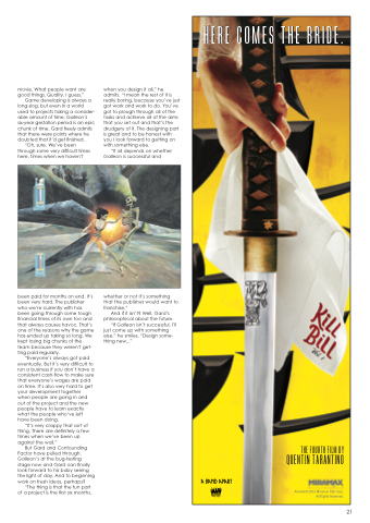 been paid for months on end. It’s been very hard. The publisher who we’re currently with has been going through some tough financial times of its own too and that always causes havoc. That’s one of the reasons why the game has ended up taking so long. We kept losing big chunks of the team because they weren’t get- ting paid regularly.