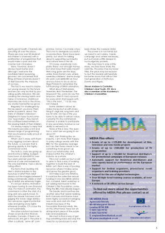 Of course, everybody com- plains there’s not enough money, but what does that really mean? Well, long gone are the days, under Anna Home’s rule, where weekday childrens’ drama budg- ets were over £450,000 an hour and you have to be as old as Nigel Pickard to remember the full financing of British animation.