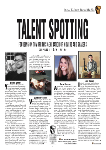 The latter programme has since won an International Emmy, confirming Phillipsas one of the country’s top com- edy scribes. Of course, all that success has meant she is recognised in public, something she still hasn’t quite come to terms with. “I’m not mobbed like a soap star, but it’s still disconcerting. People recognise me and say, ‘You look quite rough and much shorter than on telly.’” Rude fans aside, life looks rosy for the talented 27-year-old. She recently com- pleted a stint in Hippies, the new sitcom from the creators of Father Ted and there is a brand new series of Pony set