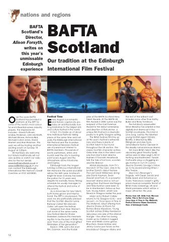 In fact, it is made up of about nine individual Festivals taking place at the same time and nat- urally the Edinburgh International Film Festival and the Guardian International Television Festival are of paramount interest to BAFTA members. Thousands of exotic performers, artists and tourists swell the city to bursting point every August and the atmosphere alone intoxicates and inspires.