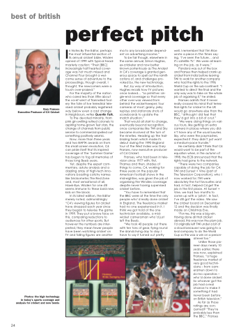 neer days nearly 10 years earlier, there was now, explained Franses, “a huge freelance market of very good techni- cians – from cam- eramen down to slo-mo operators – who’d done cricket. So whoever got the job had a real chance to make it something it had never been before on British television.”