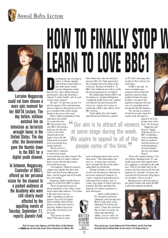 Lorraine Heggessey could not have chosen a more epic moment for her BAFTA Lecture. The day before, millions watched live on television as terrorists wrought havoc in the United States. The day after, the Government gave the thumbs down totheBBCfora digital youth channel.