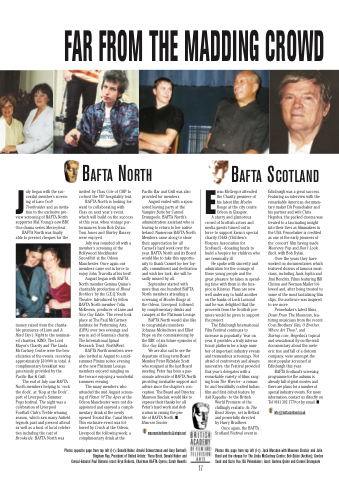 We are also sad to see the departure of long term Board Member Peter Ridsdale Scott who resigned at the last Board meeting. Peter has been a pas- sionate advocate of BAFTA North providing invaluable support and advice since the chapter’s con- ception. The Board and Director, Maureen Sinclair, would like to express their thanks for all Peter’s hard work and ded- ication in raising the pro-