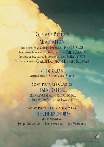 PERFORMANCE BY AN ACTRESS IN A SUPPORTING ROLE – MERYL STREEP SCREENPLAY (ADAPTED) – CHARLIE KAUFMAN & DONALD KAUFMAN