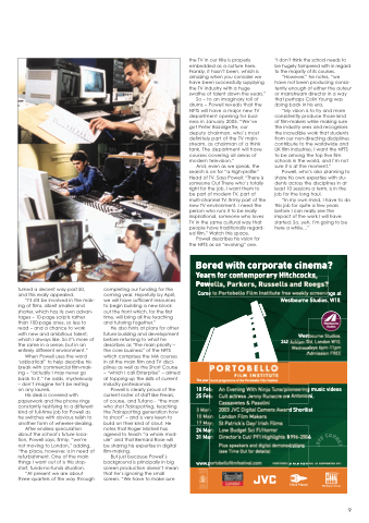 So – to an imaginary roll of drums – Powell reveals that the NFTS will have a major new TV department opening for busi- ness in January 2005. “We’ve got Peter Bazalgette, our deputy chairman, who’s most definitely part of the TV main- stream, as chairman of a think tank. The department will have courses covering all areas of modern television.”