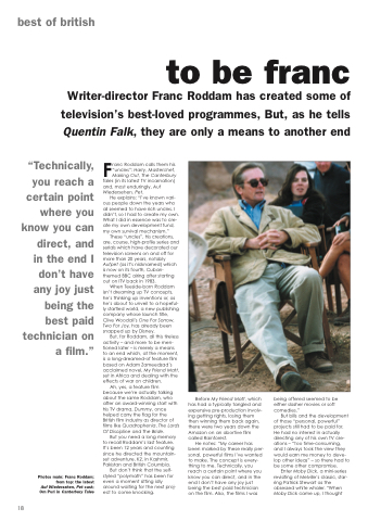 Writer-director Franc Roddam has created some of television’s best-loved programmes, But, as he tells Quentin Falk, they are only a means to another end