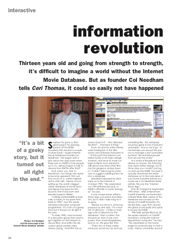 Thirteen years old and going from strength to strength, it’s difficult to imagine a world without the Internet Movie Database. But as founder Col Needham tells Ceri Thomas, it could so easily not have happened