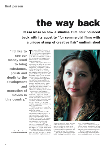 The woes of Film Four were so well reported in the media in 2002 that some people seem surprised to find we still exist in 2004. But the company’s Lazarus- like re-emergence has perhaps been more of a transformation than resurrection.