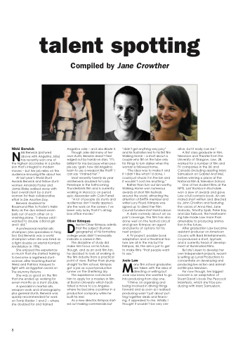 After graduation Law became assistant producer on American Cousins with Bard Entertainments, co-produced a short, Spyhole, and is currently head of develop- ment at Illuminated Films.