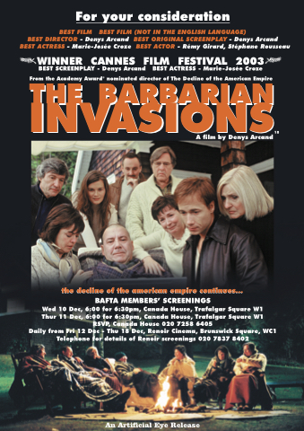 BEST ACTRESS - Marie-Josée Croze BEST ACTOR - Rémy Girard, Stéphane Rousseau WINNER CANNES FILM FESTIVAL 2003
