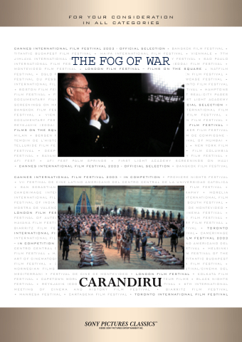 CANNES INTERNATIONAL FILM FESTIVAL 2003 - OFFICIAL SELECTION • BANGKOK FILM FESTIVAL • TITANTIC BUDAPEST FILM FESTIVAL • HAIFA INTERNATIONAL FILM FESTIVAL • VIENNALE • 7TH JIHLAVA INTERNATIONAL D Y FESTIVAL • SAO PAULO INTERNATIONAL FILM FES (EDDA) FILM FESTIVAL • MONTEVIDEO FILM FESTIVAL • LONDON FILM FESTIVAL – FILMS ON THE SQUARE • NATFILM