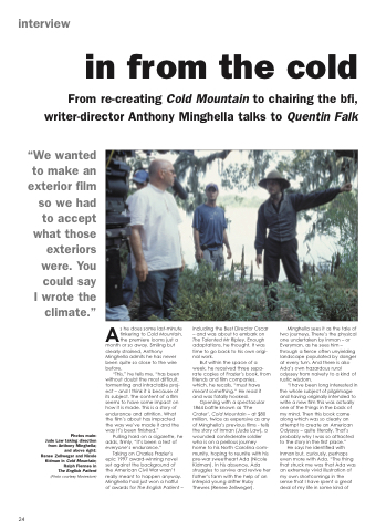 From re-creating Cold Mountain to chairing the bfi, writer-director Anthony Minghella talks to Quentin Falk