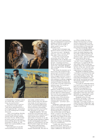 “Here I was reading, drawing and planning while men and women were actually working the land. For me, all films should be about what you can learn. I knew nothing about the Civil War, mountains or nature. So I felt there was a real possibility of edu- cating myself.”