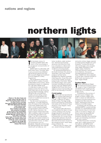 An exciting development in the North has been the arrival of Tower Films, who have chosen Liverpool as their home. Established by Stephen Marsden, Chief Executive, Tower Films aims to boost the number of movies being made in the North. Filming has already begun and a slate has been scheduled to start pro- duction next year. BAFTA North is delighted that Tower Films have agreed a level of sponsorship sup- port for the following 12 months.