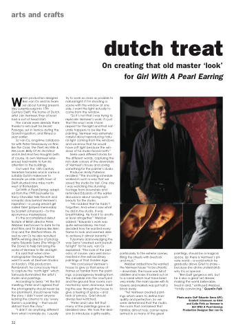 It’s the accomplished debut feature of British director Peter Webber, best known to date for his short films and TV dramas like Men Only and The Stretford Wives. As well as van Os he also recruited BAFTA-winning director of photog- raphy Eduardo Serra (The Wings Of The Dove) to help him bring the world of Vermeer to life and light.