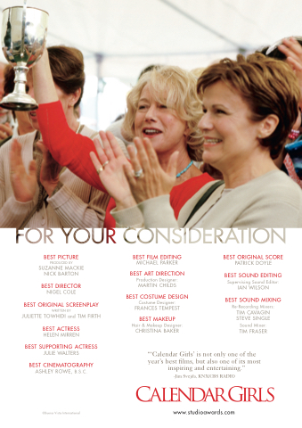 “‘Calendar Girls’ is not only one of the“‘ year’s best films, but also one of its most .”inspiring and entertaining.”