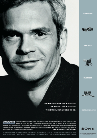 values of 35mm film, for a cost significantly lower than that of 16mm. We’ve put our heads together with the TV industry and created an HDCAM range for Europe that delivers these benefits today and will be compatible with TV standards of the future. What’s more, it’s also compatible with existing post-production systems. And best of all it means a happy ending for you. www.sonybiz.net/hdcam