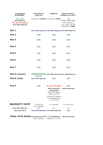 FINAL VOTE RESULTTenSant Doors 9-0 YES 9-1 Do Windows Flat 9 awaited probably 10-0 to do