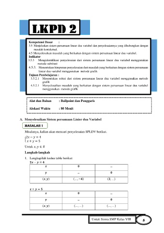 3.5 Menjelaskan sistem persamaan linear dua variabel dan penyelesaiannya yang dihubungkan dengan