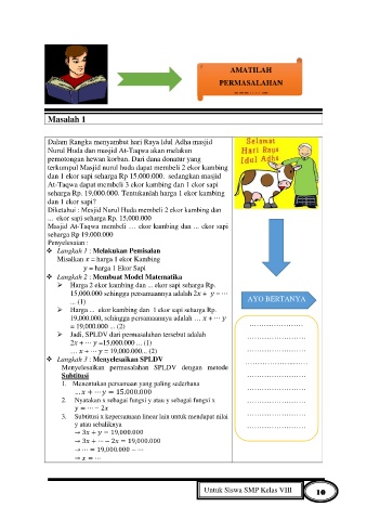 Menyelesaikan permasalahan SPLDV dengan metode ……..………………