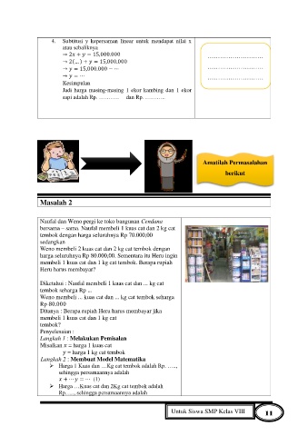 bersama – sama. Naufal membeli 1 kuas cat dan 2 kg cat