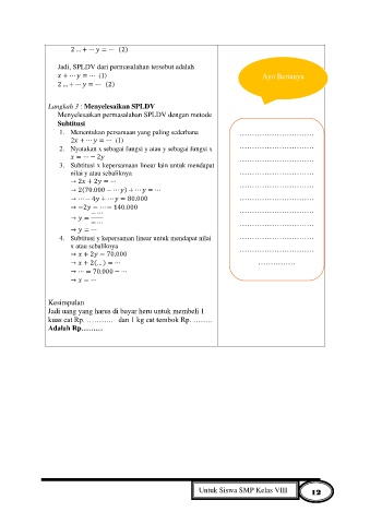 Jadi, SPLDV dari permasalahan tersebut adalah