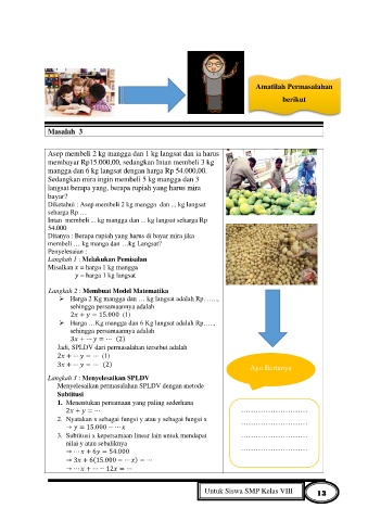 Diketahui : Asep membeli 2 kg mangga dan ... kg langsat