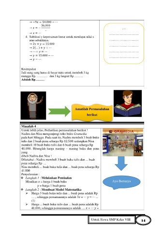 Misalkan = harga 1 buah buku Ayo Bertanya