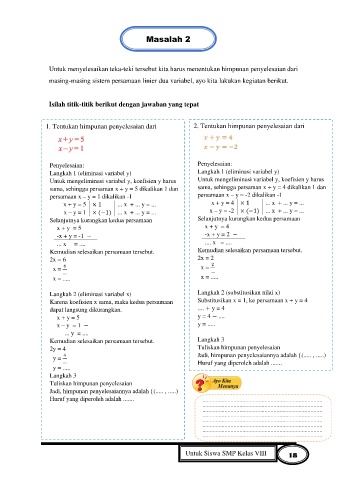 masing-masing sistem persamaan linier dua variabel, ayo kita lakukan kegiatan berikut.