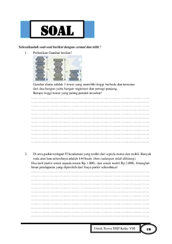 2. Di area parkir terdapat 55 kendaraan yang terdiri dari sepeda motor dan mobil. Banyak