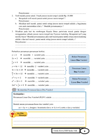 Persamaan Linear Dua Variabel (PLDV) adalah ...................................................................