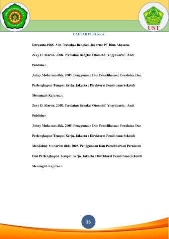 Zevy D. Maran. 2008. Peralatan Bengkel Otomotif. Yogyakarta: Andi