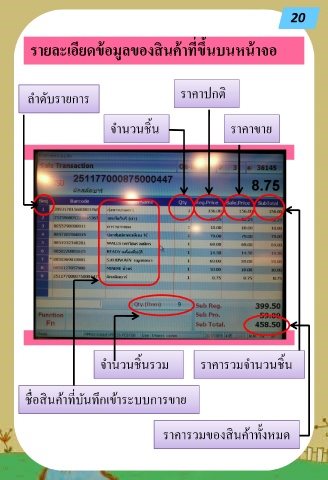 รายละเอียดขอมูลของสนคาทีขึ้นบนหนาจอ