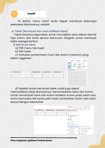 Untuk menambah baris dan kolom letakkan kursor pada salah satu